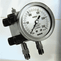 DP SERIES -Manometro differenziale a doppia membrana saldata completo di contatto elettrico-adatto per basse pressioni differenziali e statiche di 100 bar -Double welded diaphragm differential pressure gauge complete with electric contact-suitable for low differential values and for 100 bar static pressures